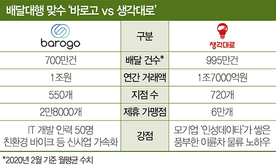 [맞수열전] 치열한 배달대행 시장 1위 싸움…IT 앞세운 ‘바로고’ vs 덩치 큰 ‘생각대로’ - 매��